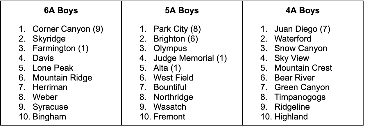 Skyridge will take on Timpanogos in a cross-classification match on Tuesday, and Park City and Lone Peak will face off on Wednesday. Also on Wednesday, Corner Canyon and Juan Diego will go toe-to-toe in a battle for Draper.