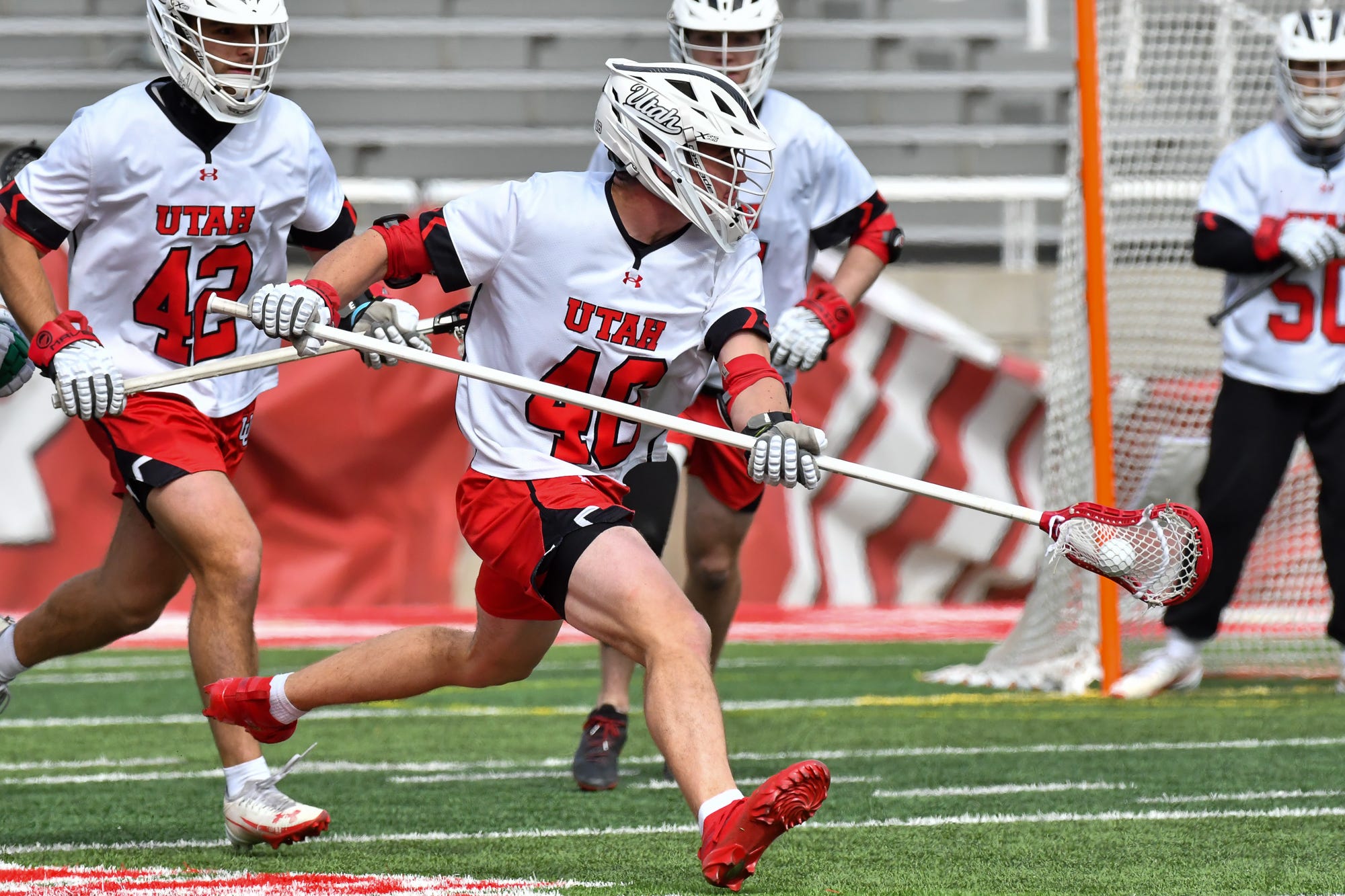 What happens when you add Mason Quick, one of the best goal-scorers in Utah High School lacrosse history, to an attack line already featuring Gavin Taylor and Cade Kirschner? You get 122 goals, 55 assists, and an absolute headache for anyone trying to guard them. If you focus on the attack group too long, Hutton Murphy will make you pay, as many defenses have seen to the tune of 26 goals and 18 assists. The Cougars’ midfield may not score at the same rate as the attack, but they initiate a lot of the offense and notch tons of assists. BYU’s defense has been excellent at causing turnovers this year, especially from their LSMs and defensive midfield. Short-stick Devin Nguyen, as well as LSMs Taylor Crump and Isaac Anderson, each have more than 10 caused turnovers so far this season.
